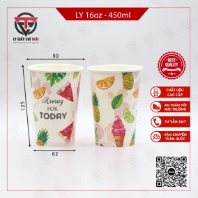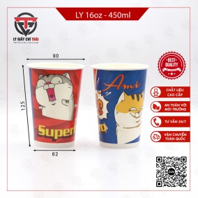 Ly giấy 16oz cỡ lớn có thể tích 480ml thích hợp sử dụng cho các loại đồ uống như cà phê, trà sữa, các loại đồ uống nóng, lạnh khác